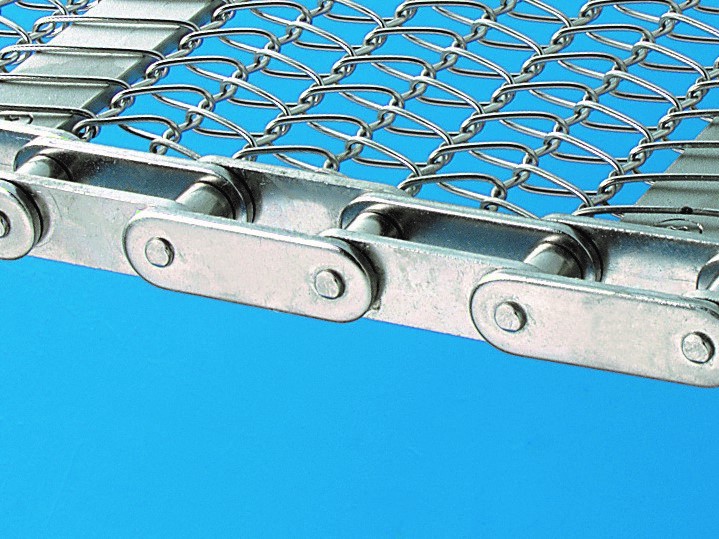 Chain attached on both sides of normal wire conveyor belt.