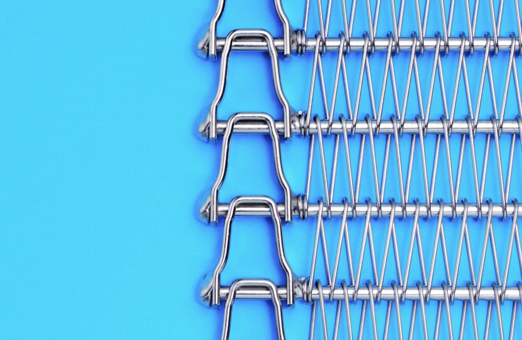 Conveyor belt for spiral tower with uniform and smooth edge. It is processed to prevent oxidization and sensitaization, and the entire belt is degreased to prevent dirt and damage.