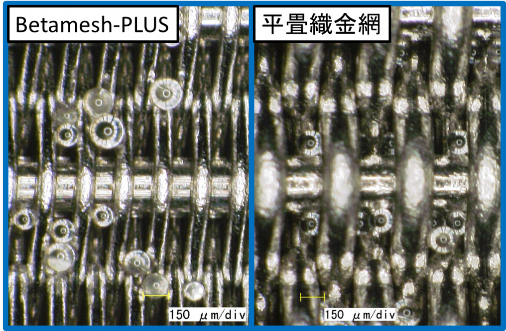 Differences in particle capture form of Plain dutch weave mesh and Betamesh-PLUS