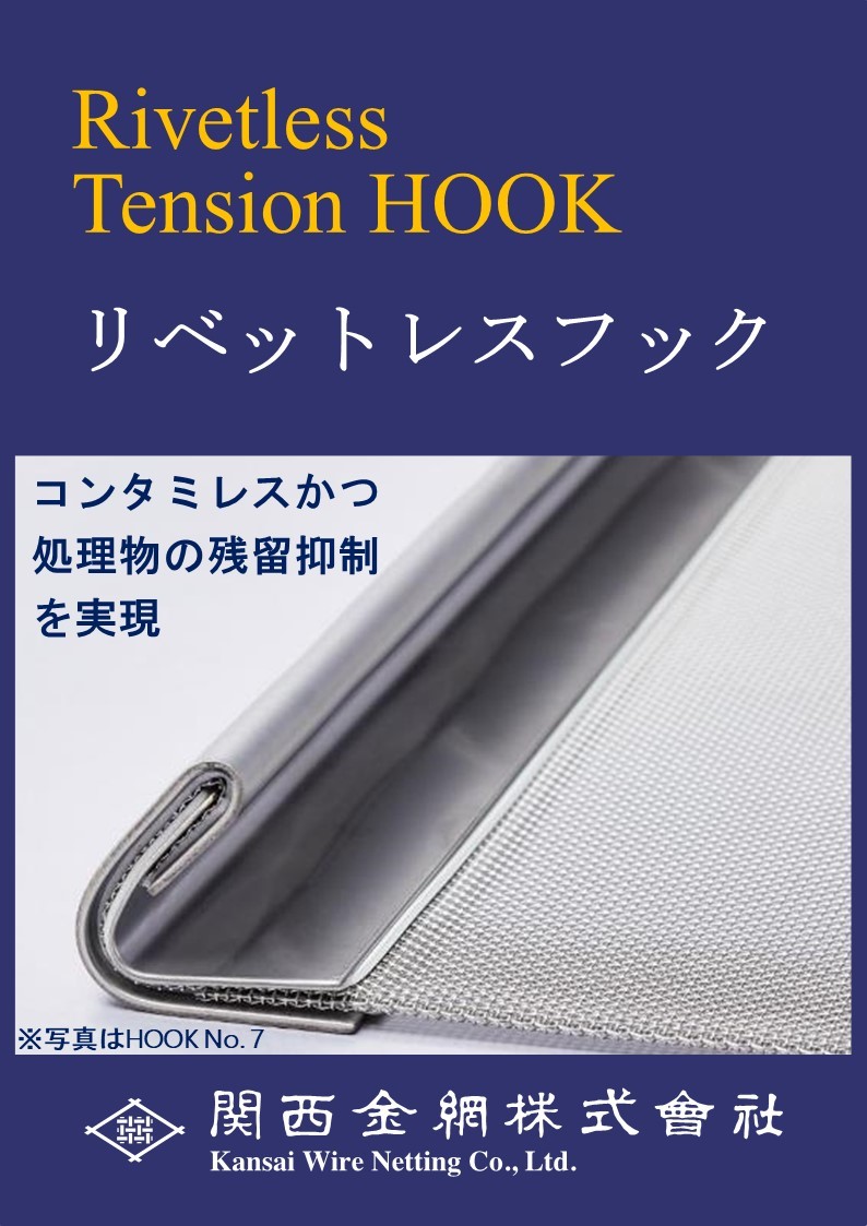 フック板と金網の隙間への処理物残留は抑制されますが、リベット加工により発生した金属粉が異物混入になる恐れがあります。(※2)