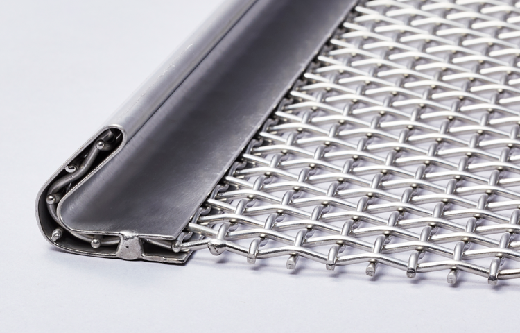 角形の振動ふるい機に使用されるスクリーンです。長方形網目のスクリーンを使用する場合、粉体の流れ方向に対して網目方向(スロット)がありますので注意が必要です。ふるい機によって、ふるい機側のクランピングバーに固定するテンションフックタイプや、専用枠に取り付けたカートリッジタイプなどがあります。当社のテンションフック標準仕様は、大きく分けて7種類(HOOK No. 1~7)あり、スクリーン仕様やふるい分け条件に応じて使い分けます。他のフックタイプとして、フラットバーやアングルにスクリーンを固定したフック形状などもあります。